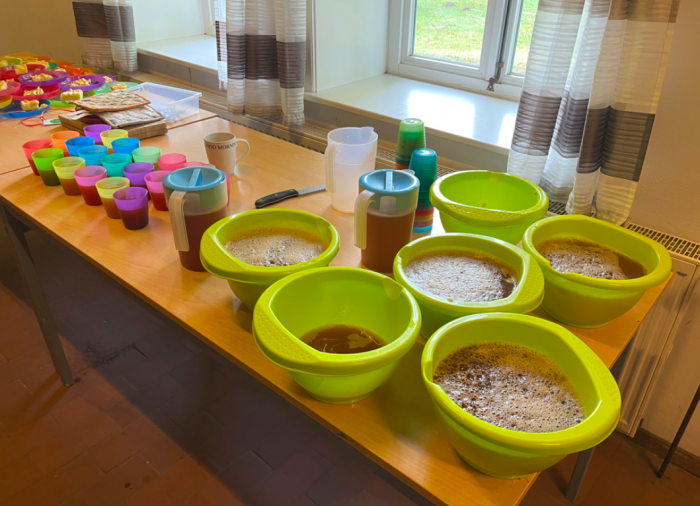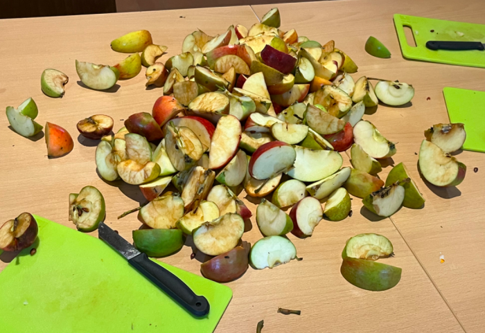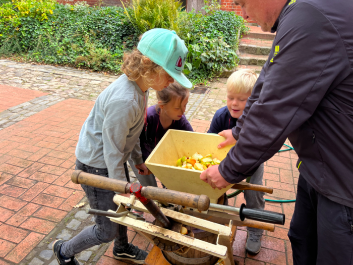 Die Kinder der zweiten Klassen haben sich in den vergangenen Sachunterrichtsstunden mit dem Thema „Apfel“ beschäftigt und sich dabei unter anderem den Aufbau und die Entwicklung des Apfels über das Jahr genauer angeschaut. Ebenso durfte natürlich ein Apfel-Tasting nicht fehlen, bei dem jedes Kind herausfinden konnte, welche Apfelsorte ihm am besten schmeckt. Den krönenden Abschluss des Themas bildete schließlich der Ausflug zum Kuhlhoff nach Bippen. Dort durften die Kinder die selbstmitgebrachten Äpfel zu frischem Saft weiterverarbeiten und einen leckeren Apfelkuchen backen. Auf diese Weise haben sie erfahren, wie viel Arbeit hinter der Verarbeitung der Rohstoffe steckt und wie wichtig es deswegen ist, unsere Lebensmittel wertzuschätzen.