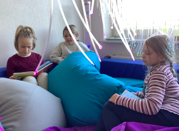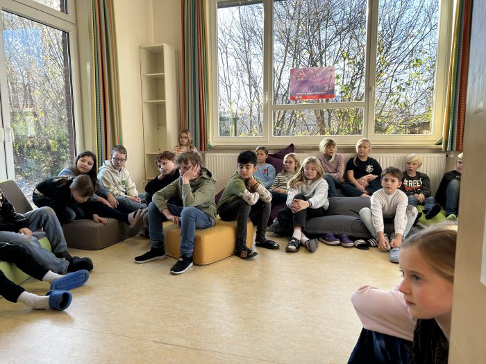 Der Besuch von Herrn Stasun und unserer ehemaligen Schulleiterin Stefanie Schürmann war das abschließende Highlight einer ereignisreichen Woche. In der Bücherei und im Englischraum durften es sich die Dritt- und Viertklässler gemütlich machen während sie eine Geschichte vorgelesen bekamen.
