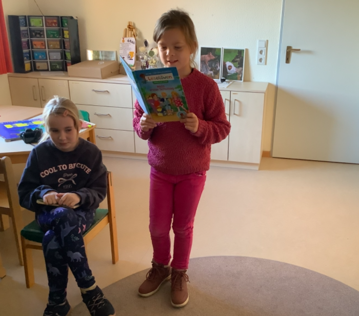 Im Rahmen der Vorlesewoche und als Einstimmung auf den Vorlesetag am 21.11.25 besuchten die Zweitklässler am 20.11.25 zu Fuß die katholische Kita und lasen den Vorschulkindern ihre zuvor geübten Texte vor. Gleichzeitig waren die Drittklässler in der Turnhalle, wo sie den Vorschulkindern der evangelischen Kita spannende Geschichten präsentierten. So konnten alle Kinder eine fröhliche und abwechslungsreiche gemeinsame Vorlesezeit erleben.