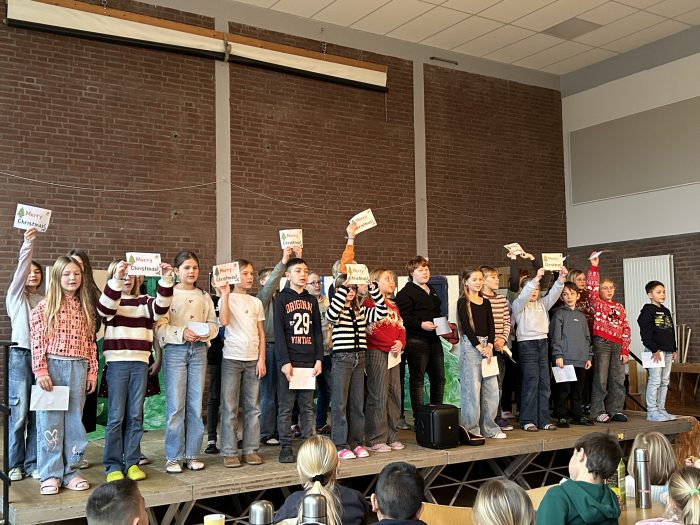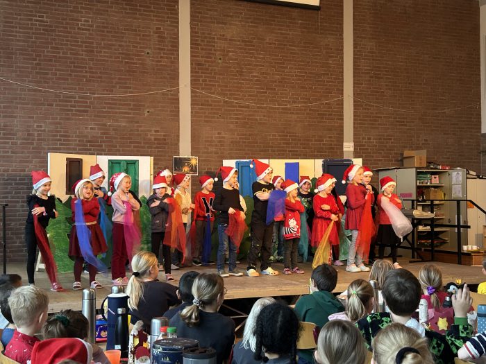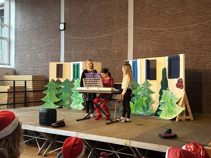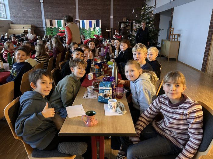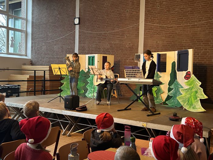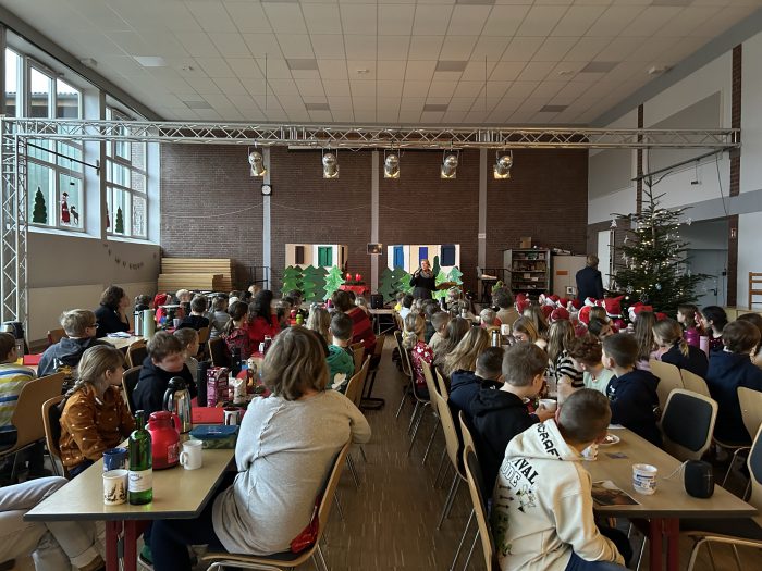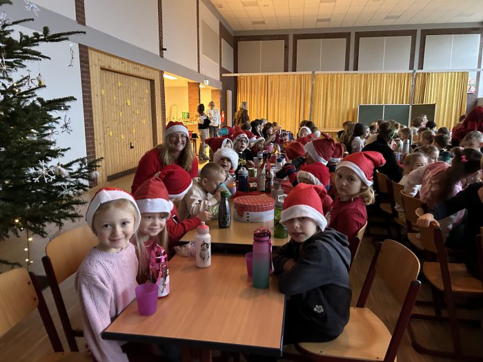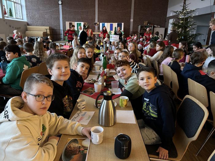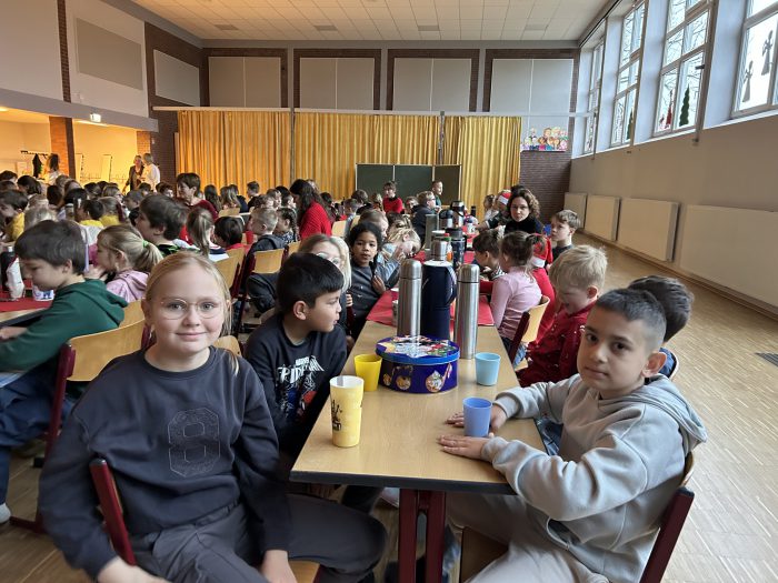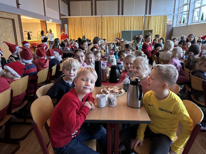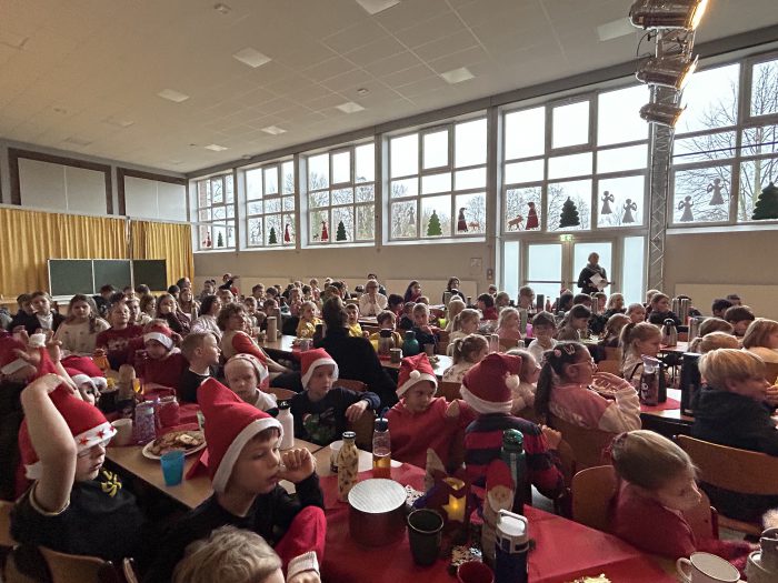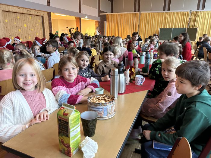 Am letzten Schultag vor den Weihnachtsferien versammelten sich alle Schülerinnen und Schüler, Lehrkräfte und Mitarbeiterinnen und Mitarbeiter der Schule in der Mehrzweckhalle. Alle Klassen hatten eine kleine Aufführung vorbereitet. Eine kunterbunte Mischung aus Liedern, Instrumentalstücken, Gedichten und auch einem kleinen Theaterstück verbreiteten eine großartige Weihnachtsstimmung. Natürlich durften auch selbstgebackene Kekse und leckerer Punsch nicht fehlen.