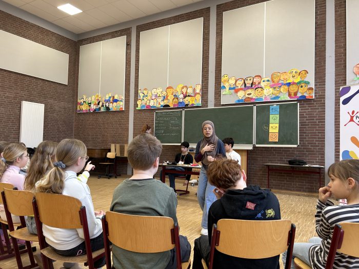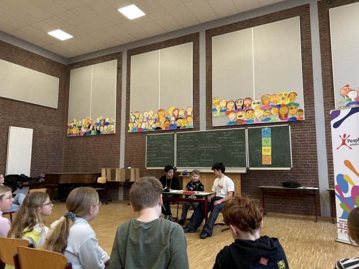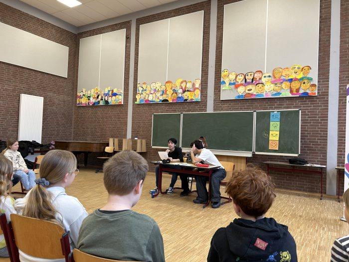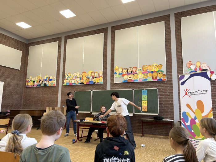 Das interaktive Theater „People’s Theater“ besuchte Mitte Dezember und Mitte Februar unsere Klassen des 3. und 4. Jahrgangs. An insgesamt vier Projekttagen wurden die Schülerinnen und Schüler Teil kleiner interaktiver Geschichten, die zum Nachdenken über das soziale Miteinander anregten. Dabei ging es um Themen wie Ausgrenzung, Mobbing, Ehrlichkeit und Teamarbeit. Die gemeinsame Reflexion des in den Theaterstücken gezeigten Verhaltens und das Sammeln von Handlungsalternativen war sehr motivierend für die Schülerinnen und Schülern und wird das Miteinander unserer Schulgemeinschaft bereichern.