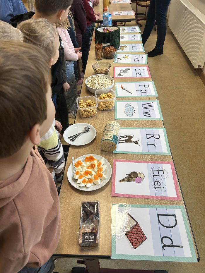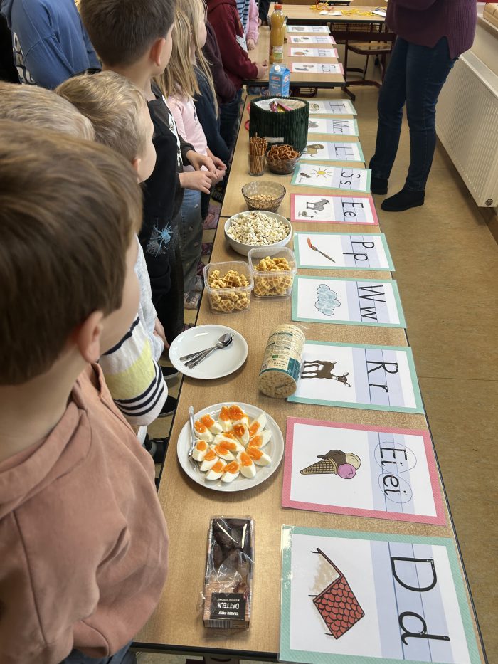 Die Kinder der 1. Klassen haben in ihrem ersten Halbjahr in der Schule schon eine ganze Menge gelernt. So haben sie sich unter anderem im Deutschunterricht bereits 13 Buchstaben erarbeitet. Als Überraschung zu den Zeugnisferien wurde daher ein „Buchstaben-Buffet“ vorbereitet. An diesem konnten sie sich passend zu den gelernten Buchstaben an vielen Leckereien erfreuen.