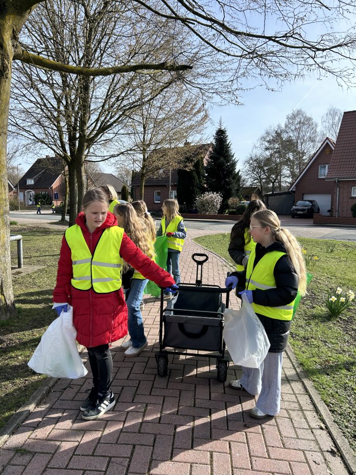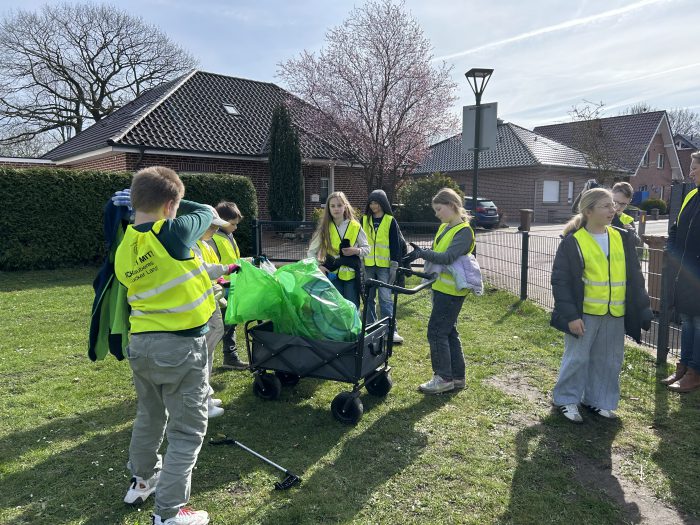 Am letzten Schultag vor den Osterferien machten sich alle Klassen unserer Schule mit Bollerwagen und Müllsäcken auf den Weg durch ausgewählte Straßen in Nortrup. Mit großer Motivation wurde Müll an Straßenrändern, auf Gehwegen, in Gräben oder auf Wiesen eingesammelt.